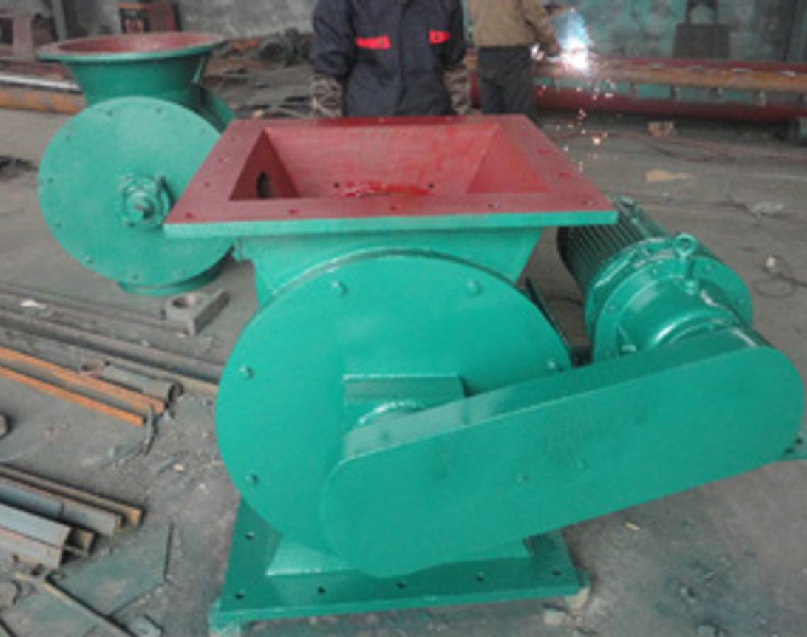 链条传动(YJD-HG)卸料器由旋转给料器是由带有数片叶片的转子叶轮、壳体、密封件及减速器、电动机等组成;当上部料仓的物料靠自重落下充填在叶片之间的空隙中, 随叶片的旋转而在下部卸出, 因此, 星型卸料装置可以定量而连续地卸料;旋转给料器常用在气力输出系统中,对于压力输出系统或负压输出系统,可以均匀, 连续地向输料管供料, 以保证气力输出管内的气、固体比较稳定, 从而使气力输送能正常工作, 同时,又能将卸料阀的上、 下部气压隔断而起到锁气作用。 因此,卸料装置是气力输送系统中常用的重要部件。